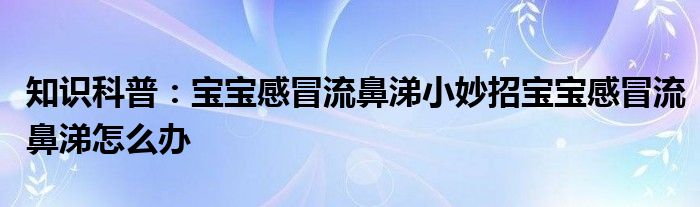 如今隨著人們生活品質越來越高,大家對于生活方面的追求也是越來越多了,那么既然對于生活方面的知識需求了解,那么小編今天就來給大家針對寶寶感冒流鼻涕小妙招寶寶感冒流鼻涕怎么辦這方面的知識來進行一個介紹吧。