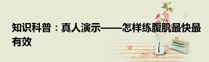 如今隨著人們生活品質越來越高,大家對于生活方面的追求也是越來越多了,那么既然對于生活方面的知識需求了解,那么小編今天就來給大家針對真人演示——怎樣練腹肌最快最有效這方面的知識來進行一個介紹吧。