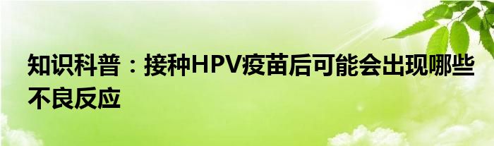 如今隨著人們生活品質(zhì)越來(lái)越高,大家對(duì)于生活方面的追求也是越來(lái)越多了,那么既然對(duì)于生活方面的知識(shí)需求了解,那么小編今天就來(lái)給大家針對(duì)接種HPV疫苗后可能會(huì)出現(xiàn)哪些不良反應(yīng)這方面的知識(shí)來(lái)進(jìn)行一個(gè)介紹吧。