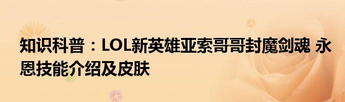 如今隨著人們生活品質(zhì)越來越高,大家對(duì)于生活方面的追求也是越來越多了,那么既然對(duì)于生活方面的知識(shí)需求了解,那么小編今天就來給大家針對(duì)LOL新英雄亞索哥哥封魔劍魂 永恩技能介紹及皮膚這方面的知識(shí)來進(jìn)行一個(gè)介紹吧。