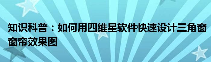 如今隨著人們生活品質越來越高,大家對于生活方面的追求也是越來越多了,那么既然對于生活方面的知識需求了解,那么小編今天就來給大家針對如何用四維星軟件快速設計三角窗窗簾效果圖這方面的知識來進行一個介紹吧。