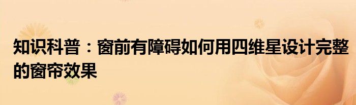 如今隨著人們生活品質越來越高,大家對于生活方面的追求也是越來越多了,那么既然對于生活方面的知識需求了解,那么小編今天就來給大家針對窗前有障礙如何用四維星設計完整的窗簾效果這方面的知識來進行一個介紹吧。