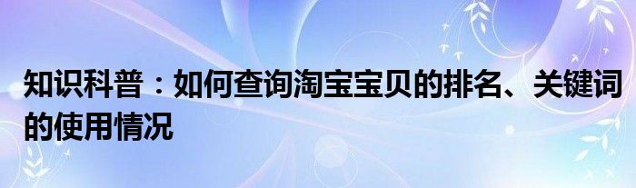 如今隨著人們生活品質越來越高,大家對于生活方面的追求也是越來越多了,那么既然對于生活方面的知識需求了解,那么小編今天就來給大家針對如何查詢淘寶寶貝的排名、關鍵詞的使用情況這方面的知識來進行一個介紹吧。