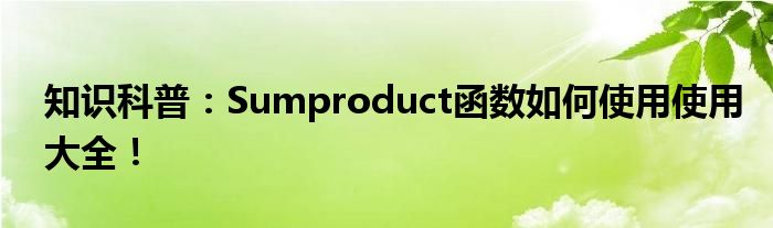 如今隨著人們生活品質越來越高,大家對于生活方面的追求也是越來越多了,那么既然對于生活方面的知識需求了解,那么小編今天就來給大家針對Sumproduct函數如何使用使用大全!這方面的知識來進行一個介紹吧。