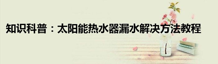 如今隨著人們生活品質(zhì)越來越高,大家對于生活方面的追求也是越來越多了,那么既然對于生活方面的知識需求了解,那么小編今天就來給大家針對太陽能熱水器漏水解決方法教程這方面的知識來進行一個介紹吧。