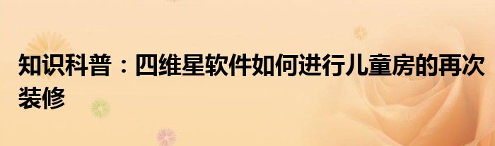 如今隨著人們生活品質(zhì)越來越高,大家對于生活方面的追求也是越來越多了,那么既然對于生活方面的知識需求了解,那么小編今天就來給大家針對四維星軟件如何進行兒童房的再次裝修這方面的知識來進行一個介紹吧。