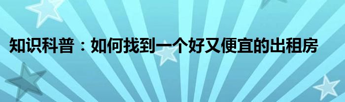 如今隨著人們生活品質越來越高,大家對于生活方面的追求也是越來越多了,那么既然對于生活方面的知識需求了解,那么小編今天就來給大家針對如何找到一個好又便宜的出租房這方面的知識來進行一個介紹吧。