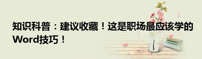 如今隨著人們生活品質(zhì)越來(lái)越高,大家對(duì)于生活方面的追求也是越來(lái)越多了,那么既然對(duì)于生活方面的知識(shí)需求了解,那么小編今天就來(lái)給大家針對(duì)建議收藏!這是職場(chǎng)最應(yīng)該學(xué)的Word技巧!這方面的知識(shí)來(lái)進(jìn)行一個(gè)介紹吧。