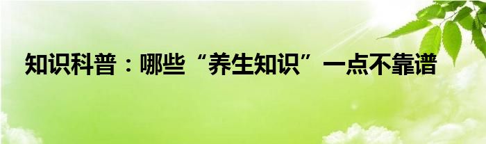 如今隨著人們生活品質(zhì)越來越高,大家對于生活方面的追求也是越來越多了,那么既然對于生活方面的知識需求了解,那么小編今天就來給大家針對哪些“養(yǎng)生知識”一點不靠譜這方面的知識來進行一個介紹吧。