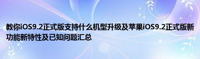 iOS9.2支持哪些設備呢?相信有很多用戶可能還不太清楚蘋果iOS9.2正式版支持什么機型升級,那么小編就為你們分享iOS9.2正式版支持升級的機型的介紹,一起來看看吧。