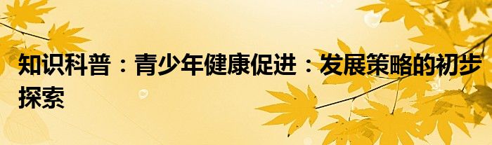 如今隨著人們生活品質(zhì)越來(lái)越高,大家對(duì)于生活方面的追求也是越來(lái)越多了,那么既然對(duì)于生活方面的知識(shí)需求了解,那么小編今天就來(lái)給大家針對(duì)青少年健康促進(jìn):發(fā)展策略的初步探索這方面的知識(shí)來(lái)進(jìn)行一個(gè)介紹吧。