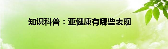 如今隨著人們生活品質(zhì)越來越高,大家對于生活方面的追求也是越來越多了,那么既然對于生活方面的知識需求了解,那么小編今天就來給大家針對亞健康有哪些表現(xiàn)這方面的知識來進(jìn)行一個介紹吧。