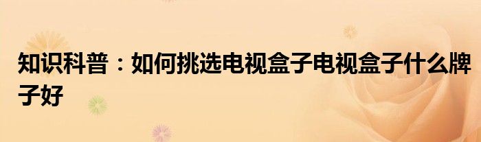 如今隨著人們生活品質越來越高,大家對于生活方面的追求也是越來越多了,那么既然對于生活方面的知識需求了解,那么小編今天就來給大家針對如何挑選電視盒子電視盒子什么牌子好這方面的知識來進行一個介紹吧。