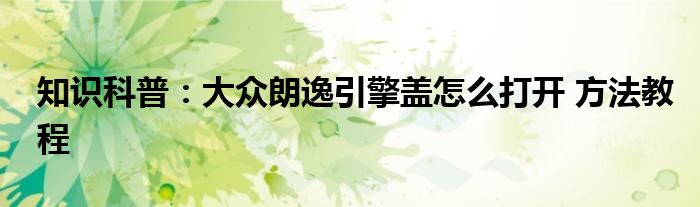 如今隨著人們生活品質(zhì)越來越高,大家對于生活方面的追求也是越來越多了,那么既然對于生活方面的知識需求了解,那么小編今天就來給大家針對大眾朗逸引擎蓋怎么打開 方法教程這方面的知識來進(jìn)行一個介紹吧。