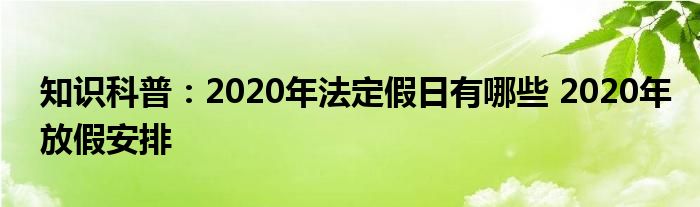 如今隨著人們生活品質越來越高,大家對于生活方面的追求也是越來越多了,那么既然對于生活方面的知識需求了解,那么小編今天就來給大家針對2020年法定假日有哪些 2020年放假安排這方面的知識來進行一個介紹吧。