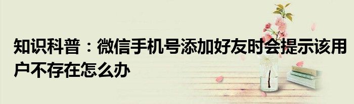如今隨著人們生活品質(zhì)越來越高,大家對于生活方面的追求也是越來越多了,那么既然對于生活方面的知識需求了解,那么小編今天就來給大家針對微信手機(jī)號添加好友時會提示該用戶不存在怎么辦這方面的知識來進(jìn)行一個介紹吧。