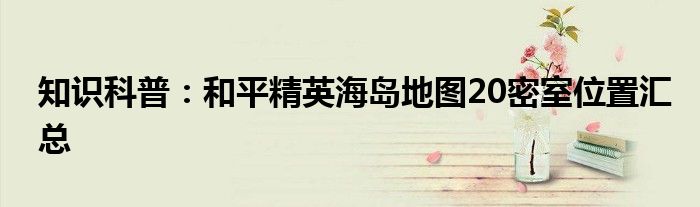 如今隨著人們生活品質越來越高,大家對于生活方面的追求也是越來越多了,那么既然對于生活方面的知識需求了解,那么小編今天就來給大家針對和平精英海島地圖20密室位置匯總這方面的知識來進行一個介紹吧。