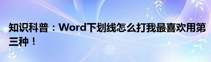 如今隨著人們生活品質越來越高,大家對于生活方面的追求也是越來越多了,那么既然對于生活方面的知識需求了解,那么小編今天就來給大家針對Word下劃線怎么打我最喜歡用第三種!這方面的知識來進行一個介紹吧。