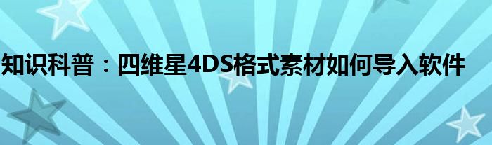 如今隨著人們生活品質越來越高,大家對于生活方面的追求也是越來越多了,那么既然對于生活方面的知識需求了解,那么小編今天就來給大家針對四維星4DS格式素材如何導入軟件這方面的知識來進行一個介紹吧。
