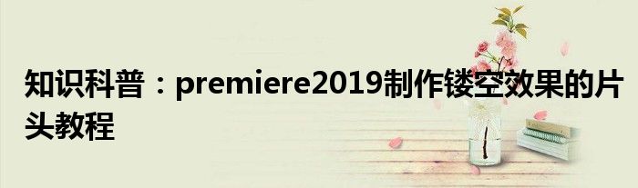 如今隨著人們生活品質越來越高,大家對于生活方面的追求也是越來越多了,那么既然對于生活方面的知識需求了解,那么小編今天就來給大家針對premiere2019制作鏤空效果的片頭教程這方面的知識來進行一個介紹吧。