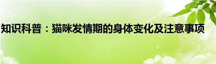如今隨著人們生活品質(zhì)越來越高,大家對(duì)于生活方面的追求也是越來越多了,那么既然對(duì)于生活方面的知識(shí)需求了解,那么小編今天就來給大家針對(duì)貓咪發(fā)情期的身體變化及注意事項(xiàng)這方面的知識(shí)來進(jìn)行一個(gè)介紹吧。