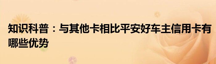 如今隨著人們生活品質越來越高,大家對于生活方面的追求也是越來越多了,那么既然對于生活方面的知識需求了解,那么小編今天就來給大家針對與其他卡相比平安好車主信用卡有哪些優勢這方面的知識來進行一個介紹吧。