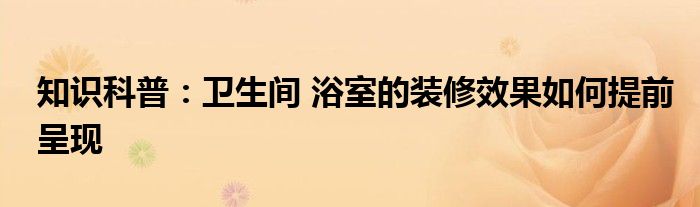 如今隨著人們生活品質越來越高,大家對于生活方面的追求也是越來越多了,那么既然對于生活方面的知識需求了解,那么小編今天就來給大家針對衛生間(浴室)的裝修效果如何提前呈現這方面的知識來進行一個介紹吧。