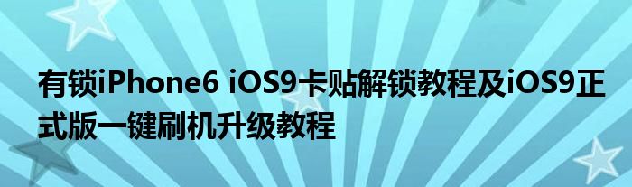 iOS9.0.1已經(jīng)推送(iOS9.0.1固件下載及升級教程),它比iOS9更穩(wěn)定更流暢,日版AU、SB和Sprint版本等有鎖iPhone6怎么升級呢?下面為你介紹有鎖iPhone6 iOS9卡貼解鎖穩(wěn)定電信完美3G、移動4G、GSM2G教程。注意,本教程完美解鎖電信3G適用于日版AU、SB和Sprint版本,移動4G和穩(wěn)定GSM2G適用于日版iPhone6系列。