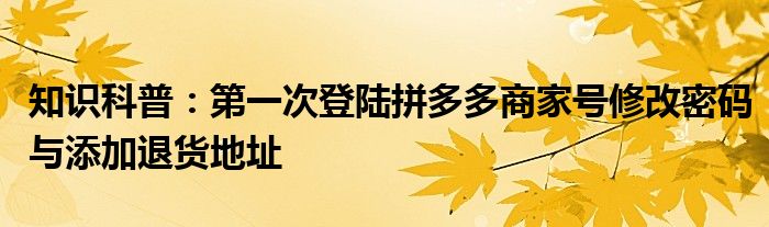 如今隨著人們生活品質(zhì)越來越高,大家對于生活方面的追求也是越來越多了,那么既然對于生活方面的知識需求了解,那么小編今天就來給大家針對第一次登陸拼多多商家號修改密碼與添加退貨地址這方面的知識來進行一個介紹吧。