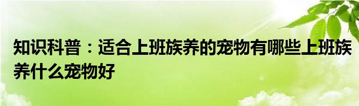 如今隨著人們生活品質越來越高,大家對于生活方面的追求也是越來越多了,那么既然對于生活方面的知識需求了解,那么小編今天就來給大家針對適合上班族養的寵物有哪些上班族養什么寵物好這方面的知識來進行一個介紹吧。