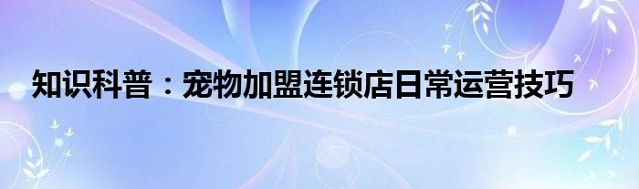 如今隨著人們生活品質越來越高,大家對于生活方面的追求也是越來越多了,那么既然對于生活方面的知識需求了解,那么小編今天就來給大家針對寵物加盟連鎖店日常運營技巧這方面的知識來進行一個介紹吧。