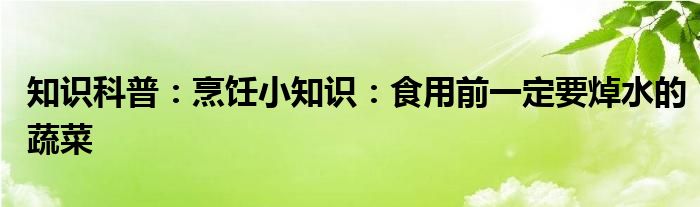如今隨著人們生活品質(zhì)越來越高,大家對(duì)于生活方面的追求也是越來越多了,那么既然對(duì)于生活方面的知識(shí)需求了解,那么小編今天就來給大家針對(duì)烹飪小知識(shí):食用前一定要焯水的蔬菜這方面的知識(shí)來進(jìn)行一個(gè)介紹吧。