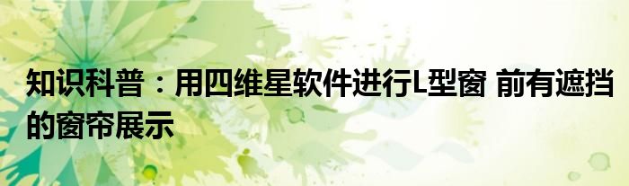 如今隨著人們生活品質越來越高,大家對于生活方面的追求也是越來越多了,那么既然對于生活方面的知識需求了解,那么小編今天就來給大家針對用四維星軟件進行L型窗(前有遮擋)的窗簾展示這方面的知識來進行一個介紹吧。