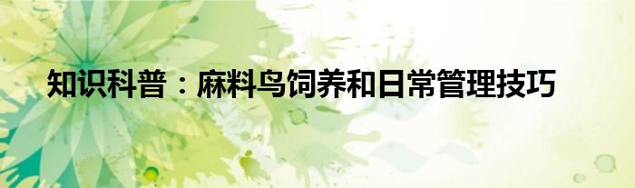 如今隨著人們生活品質(zhì)越來越高,大家對于生活方面的追求也是越來越多了,那么既然對于生活方面的知識需求了解,那么小編今天就來給大家針對麻料鳥飼養(yǎng)和日常管理技巧這方面的知識來進(jìn)行一個介紹吧。