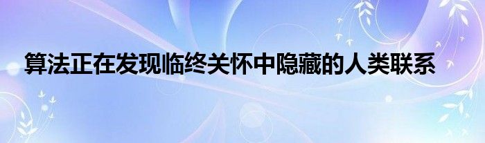 小編發現不少朋友對于 算法正在發現臨終關懷中隱藏的人類聯系 這方面的信息都比較感興趣,小編就針對 算法正在發現臨終關懷中隱藏的人類聯系 整理了一些相關方面的信息 在這里分享給大家。