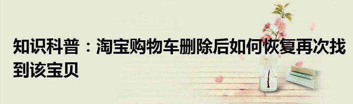 如今隨著人們生活品質(zhì)越來(lái)越高,大家對(duì)于生活方面的追求也是越來(lái)越多了,那么既然對(duì)于生活方面的知識(shí)需求了解,那么小編今天就來(lái)給大家針對(duì)淘寶購(gòu)物車刪除后如何恢復(fù)再次找到該寶貝這方面的知識(shí)來(lái)進(jìn)行一個(gè)介紹吧。