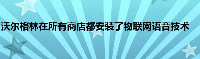 小編發現不少朋友對于 沃爾格林在所有商店都安裝了物聯網語音技術 這方面的信息都比較感興趣,小編就針對 沃爾格林在所有商店都安裝了物聯網語音技術 整理了一些相關方面的信息 在這里分享給大家。