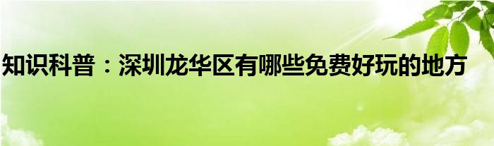 如今隨著人們生活品質越來越高,大家對于生活方面的追求也是越來越多了,那么既然對于生活方面的知識需求了解,那么小編今天就來給大家針對深圳龍華區有哪些免費好玩的地方這方面的知識來進行一個介紹吧。