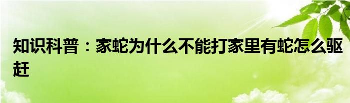 很多老人認為家蛇不能打死是出于迷信的。而且全很多地方都有這樣的迷信,覺得蛇屬于五仙,是充滿靈性的,會帶來財運,打死了家蛇會倒大霉云云。這點和民俗有關系,也和人的愛心有關系。