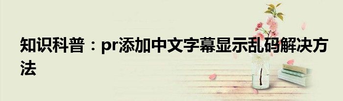 如今隨著人們生活品質越來越高,大家對于生活方面的追求也是越來越多了,那么既然對于生活方面的知識需求了解,那么小編今天就來給大家針對pr添加中文字幕顯示亂碼解決方法這方面的知識來進行一個介紹吧。