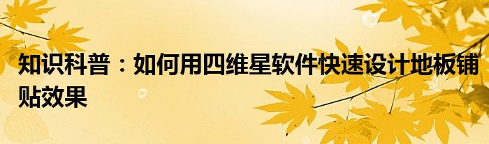 如今隨著人們生活品質越來越高,大家對于生活方面的追求也是越來越多了,那么既然對于生活方面的知識需求了解,那么小編今天就來給大家針對如何用四維星軟件快速設計地板鋪貼效果這方面的知識來進行一個介紹吧。