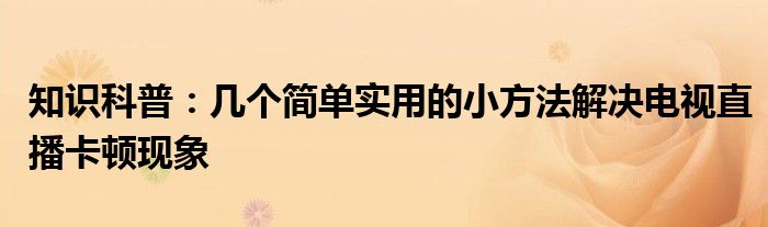 如今隨著人們生活品質(zhì)越來越高,大家對于生活方面的追求也是越來越多了,那么既然對于生活方面的知識需求了解,那么小編今天就來給大家針對幾個簡單實用的小方法解決電視直播卡頓現(xiàn)象這方面的知識來進行一個介紹吧。