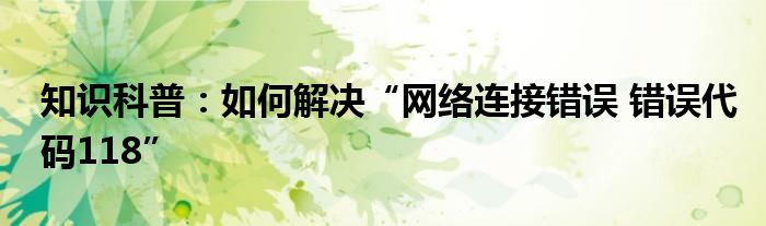 如今隨著人們生活品質越來越高,大家對于生活方面的追求也是越來越多了,那么既然對于生活方面的知識需求了解,那么小編今天就來給大家針對如何解決“網絡連接錯誤(錯誤代碼118)”這方面的知識來進行一個介紹吧。