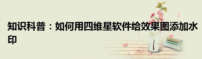 如今隨著人們生活品質越來越高,大家對于生活方面的追求也是越來越多了,那么既然對于生活方面的知識需求了解,那么小編今天就來給大家針對如何用四維星軟件給效果圖添加水印這方面的知識來進行一個介紹吧。