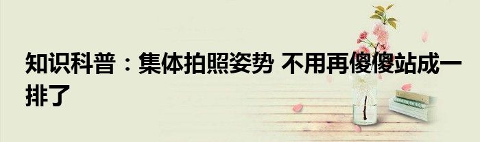 如今隨著人們生活品質越來越高,大家對于生活方面的追求也是越來越多了,那么既然對于生活方面的知識需求了解,那么小編今天就來給大家針對集體拍照姿勢 不用再傻傻站成一排了這方面的知識來進行一個介紹吧。