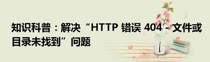 如今隨著人們生活品質(zhì)越來越高,大家對于生活方面的追求也是越來越多了,那么既然對于生活方面的知識需求了解,那么小編今天就來給大家針對解決“HTTP 錯誤 404 - 文件或目錄未找到”問題這方面的知識來進行一個介紹吧。
