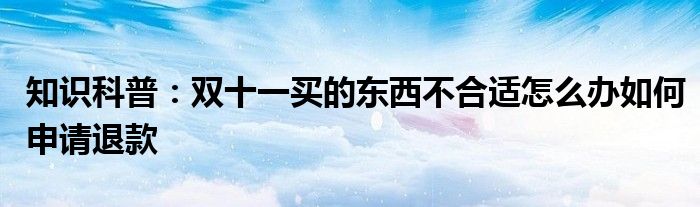 如今隨著人們生活品質越來越高,大家對于生活方面的追求也是越來越多了,那么既然對于生活方面的知識需求了解,那么小編今天就來給大家針對雙十一買的東西不合適怎么辦如何申請退款這方面的知識來進行一個介紹吧。