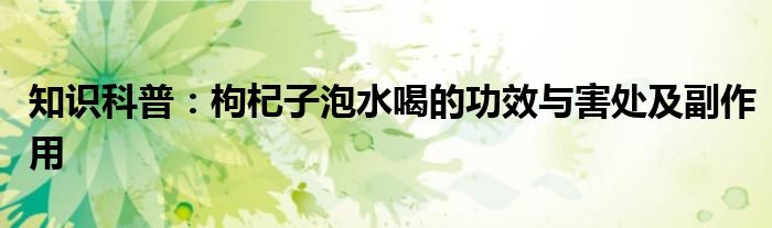 如今隨著人們生活品質(zhì)越來越高,大家對(duì)于生活方面的追求也是越來越多了,那么既然對(duì)于生活方面的知識(shí)需求了解,那么小編今天就來給大家針對(duì)枸杞子泡水喝的功效與害處及副作用這方面的知識(shí)來進(jìn)行一個(gè)介紹吧。