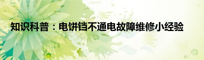 如今隨著人們生活品質(zhì)越來越高,大家對(duì)于生活方面的追求也是越來越多了,那么既然對(duì)于生活方面的知識(shí)需求了解,那么小編今天就來給大家針對(duì)電餅鐺不通電故障維修小經(jīng)驗(yàn)這方面的知識(shí)來進(jìn)行一個(gè)介紹吧。