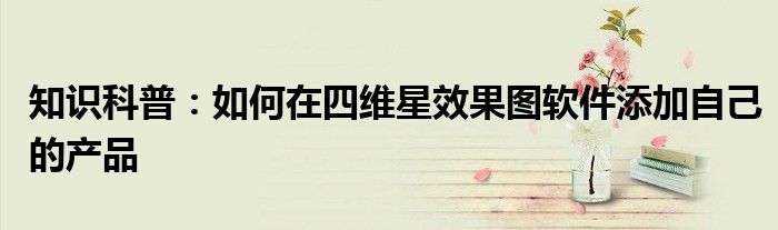 如今隨著人們生活品質(zhì)越來(lái)越高,大家對(duì)于生活方面的追求也是越來(lái)越多了,那么既然對(duì)于生活方面的知識(shí)需求了解,那么小編今天就來(lái)給大家針對(duì)如何在四維星效果圖軟件添加自己的產(chǎn)品這方面的知識(shí)來(lái)進(jìn)行一個(gè)介紹吧。